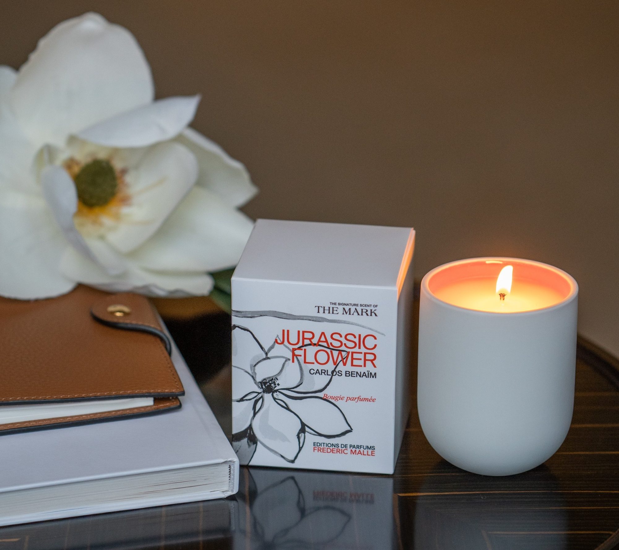 Master perfumer, Frédéric Malle created the “Jurassic Flower” fragrance as the custom scent of The Mark. The scent can be found lingering throughout the hallways of the hotel, while candles from Malle’s collection are also available via Le Shop.